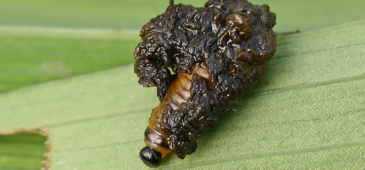 Be aware that red lily beetles use an alarm pheromone to alert other beetles to escape capture and predation. Adult beetles will fall to the ground when they detect this pheromone and will lay still with their black undersides facing upwards, making them difficult to find.